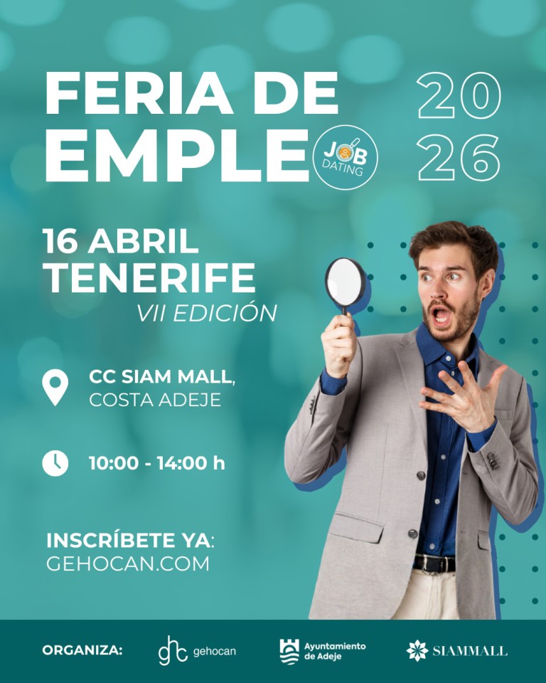 VII Feria de Empleo "Tenerife Job Dating", es un encuentro que organiza Gehocan con el Ayuntamiento de Adeje y el Centro Comercial Siam Mall.