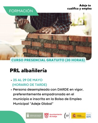Seguridad, promoción de la actividad económica y el empleo  >  Adeje Impulsa  >  Formación  >  Cursos  > PRL de trabajos en albañilería