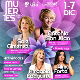 Mujeres World Fest prepara su cuarta edición con la actuación de Sole Giménez y una programación pensada para todos los públicos que pone el foco, un año más, en el talento femenino en las distintas manifestaciones artísticas. Literatura, cine, teatro y humor forman parte de esta nueva entrega de Mar Abierto Producciones que también traerá al Auditorio de Adeje, en diciembre, a Antonia Sanjuan con el monólogo ‘Entrevista con mi hija Mari’ y el humor de Alma ‘La Forte’.