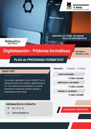 Curso para aprender a usar ChatGPT en la búsqueda activa de empleo, optimizando el CV, las cartas de presentación y el perfil profesional mediante práctica guiada y evaluación inicial y final.