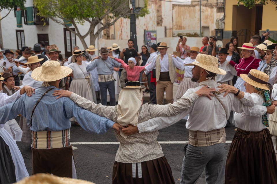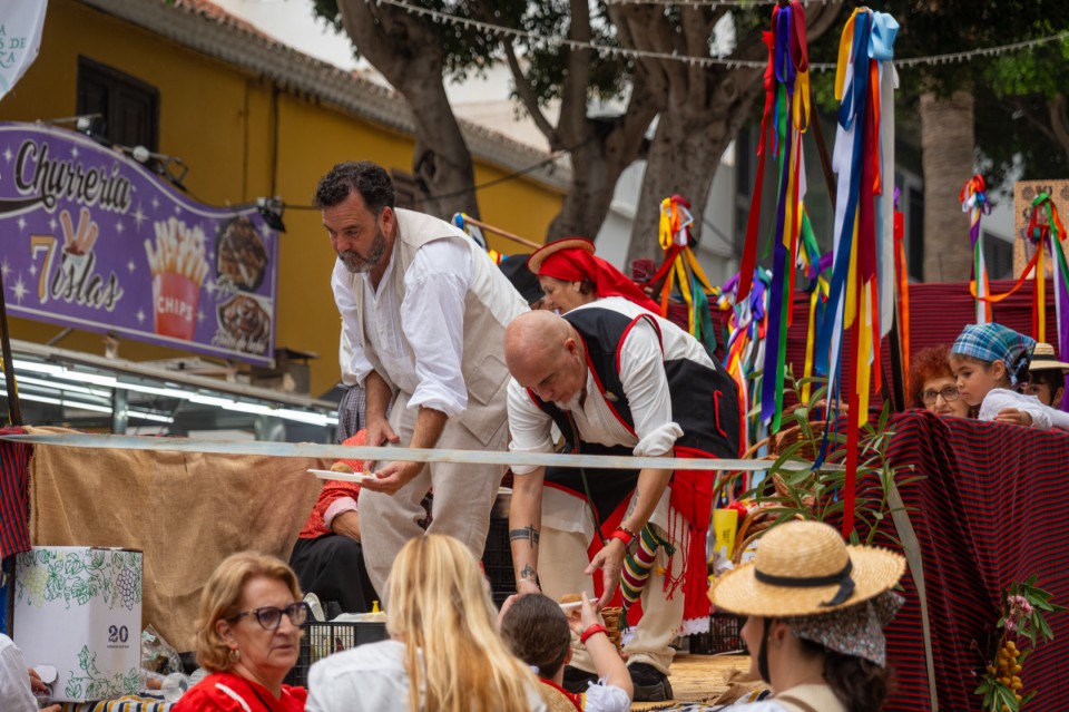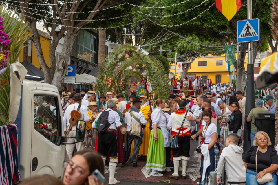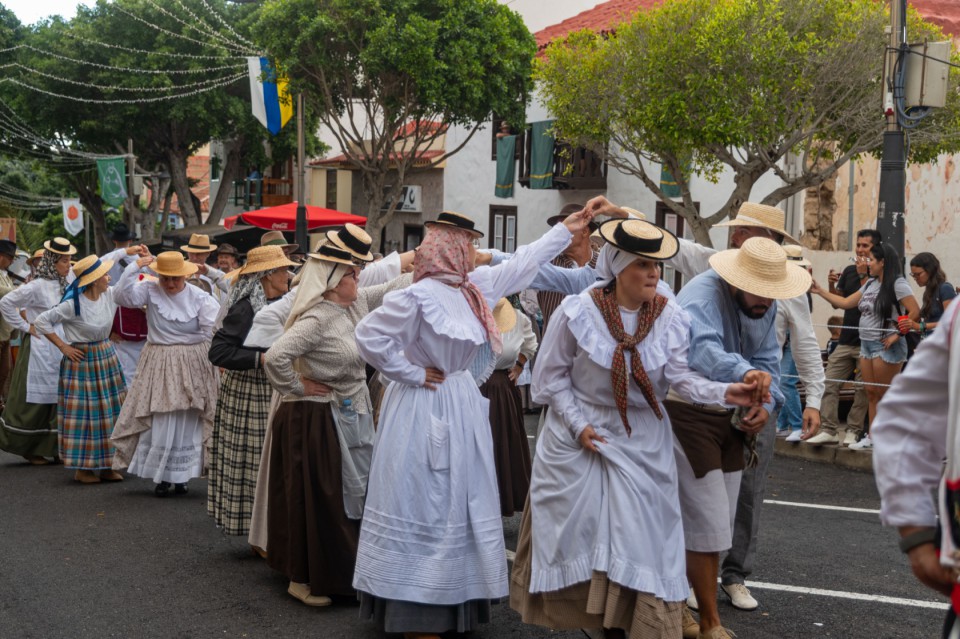 La gastronomía ocupa un lugar central en la fiesta. Papas arrugadas, gofio, sancochos, quesos artesanales, pollo de Adeje o frangollos forman parte del menú tradicional que comparten romeros, visitantes y vecinos y vecinas, acompañado por los vinos de Tenerife.