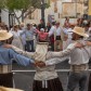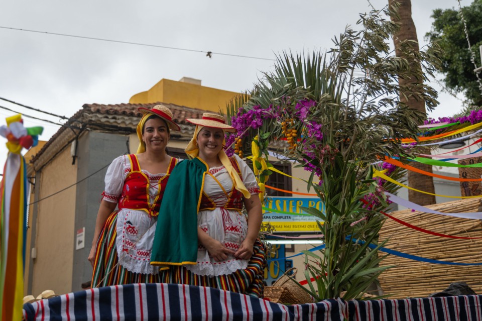 Las carretas, una decena normalmente, ascienden desde El Cerco por la calle Grande hasta la iglesia matriz, donde se realizan las ofrendas de productos de la tierra, flores y alimentos no perecederos, destinados posteriormente a centros solidarios. Junto a las ofrendas materiales, los grupos participantes presentan también piezas musicales y de baile en honor a los patronos.