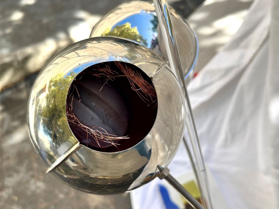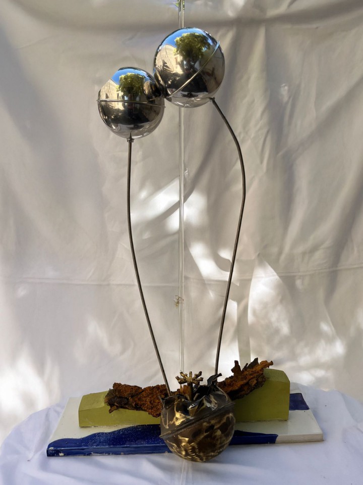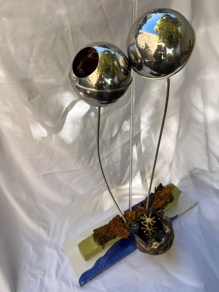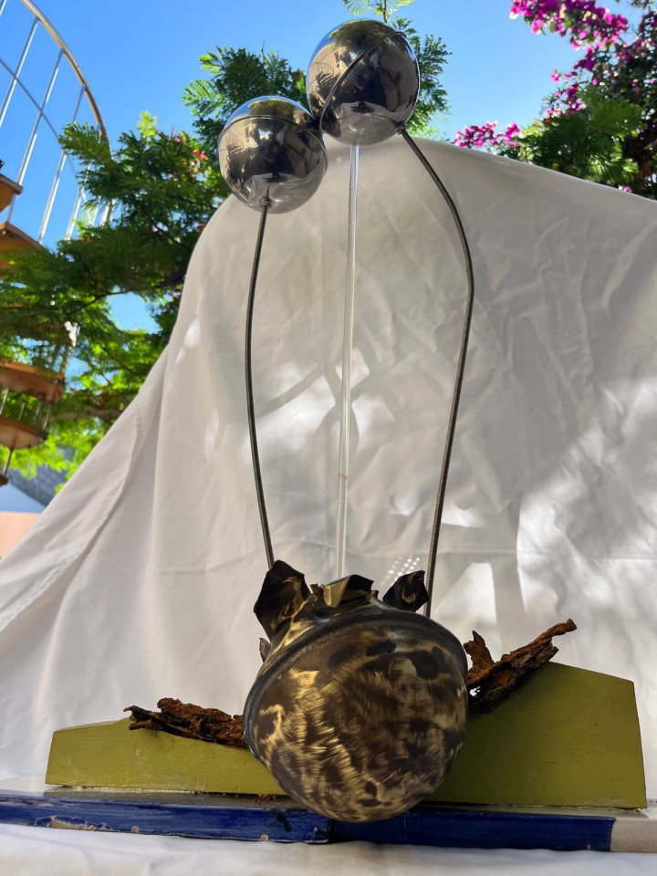 Respecto a las esferas, el autor comenta que “son como nidos: espacios de cuidado y crecimiento. En su interior contienen aislantes cerámicos luminosos, rodeados de hilos de cobre, como circuitos neuronales, que evocan el cerebro. Es un mensaje claro: las identidades diversas son inherentes a la persona, no enfermedades ni elecciones, sino manifestaciones auténticas del ser. Los nidos también simbolizan a las familias diversas del colectivo. Son hogares reales, con amor, con vínculos, con derechos. La obra proclama que estas familias existen y merecen respeto y protección como cualquier otra”.