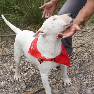 Raza: Bull Terrier Inglés (Potencialmente Peligroso, la persona que desee adoptar este animal deberá disponer de la correspondiente Licencia) Sexo: Macho Color: Blanco Tamaño: Mediano Edad aproximada: 2 años y medio