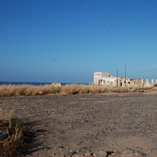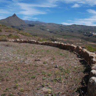 Era realizada en tosca. Sólo cuenta con mínimas partes empedradas, de 13 metros de diámetro. Parte del perímetro es consecuencia del propio rebaje del terreno, mientras que la parte que se adosa a la ladera está formado por bloques de tosca rectangulares( 0.80 x 0.40) y en la parte más alta con éstos y piedras de diferentes tamaños, sin llegar a superar los 80 cm. de altura.