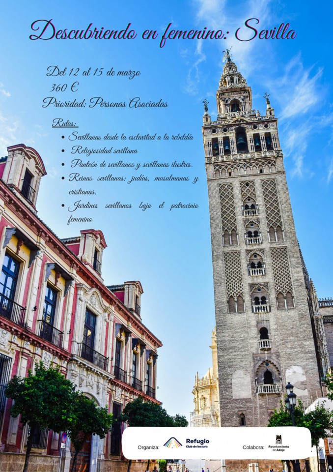 Incorporar la perspectiva de género en el análisis histórico, urbano, cultural y patrimonial de los lugares que habitamos, se ha consolidado como una herramienta indispensable para construir sociedades más justas, inclusivas y democráticas. Este proyecto nace de la necesidad de transformar estas narrativas urbanas, haciéndolas más plurales, inclusivas y críticas. Se proponen una serie de visitas guiadas por Sevilla con perspectiva de género. Conoceremos la importancia de las mujeres de diferentes culturas que allí residieron: judías, musulmanas, cristianas.... A las reinas que allí habitaron y a muchas otras de las mujeres que han marcado el devenir de la historia de esta ciudad