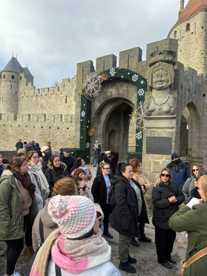 Nuestra ruta comenzó en Perpiñán, donde las luces y los puestos navideños nos dieron la bienvenida como si el invierno hubiera decidido abrazarnos. Continuamos con Carcasona, una ciudad que siempre impresiona, pero que en estas fechas parece directamente sacada de una postal: música, artesanía, sabores nuevos y un ambiente que invitaba a dejarse llevar.