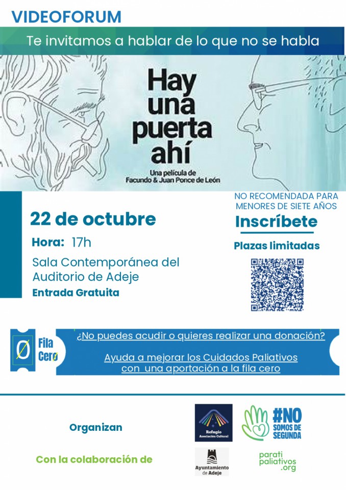 El Ayuntamiento de Adeje, en colaboración con la Asociación Cultural Refugio y la Asociación de Acción Social No Somos De Segunda, organizaron un Cine Fórum el miércoles 22 de octubre en la Sala Contemporánea del Auditorio de Adeje para conmemorar el Día Mundial de los Cuidados Paliativos.